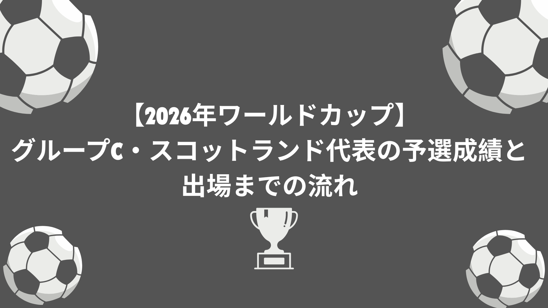 スコットランド代表は、欧州予選(UEFA)グループC を戦い抜き、2026年ワールドカップ本大会出場を決めました。