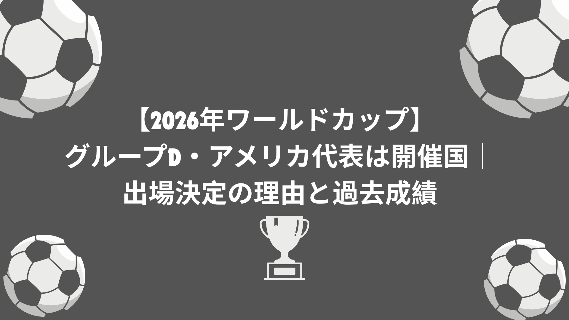 2026年FIFAワールドカップ本大会・グループDには、現時点で以下の国が確定しています。