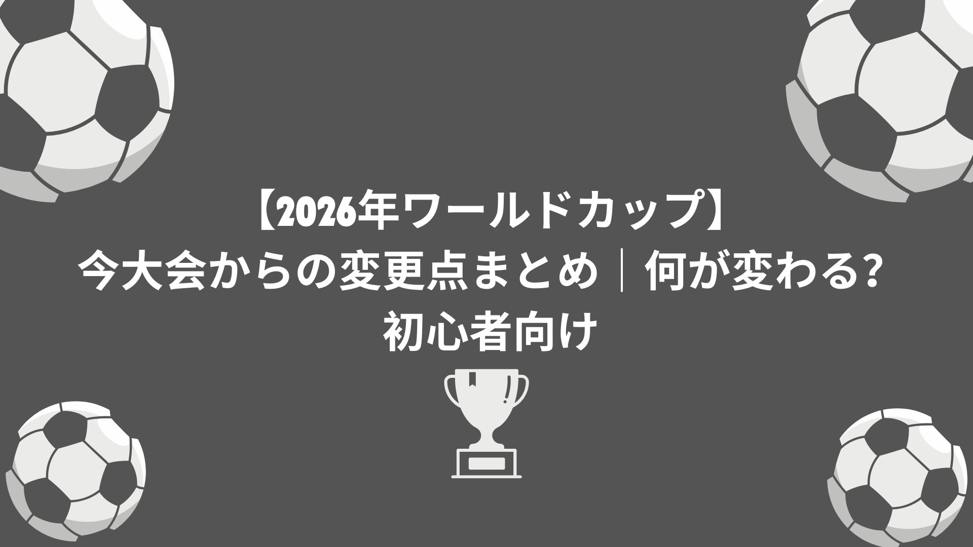 この記事では、2026年ワールドカップからの主な変更点について、現時点で確定している情報のみを、サッカー初心者の方にも分かりやすく解説します。