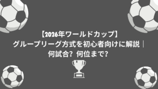 2026年ワールドカップのグループリーグ方式を初心者向けに解説。出場国数48か国での仕組みや、何試合行われるのか、決勝トーナメント進出条件を現時点の確定情報でまとめています。※2026年1月時点
